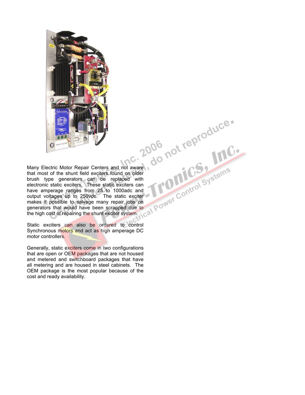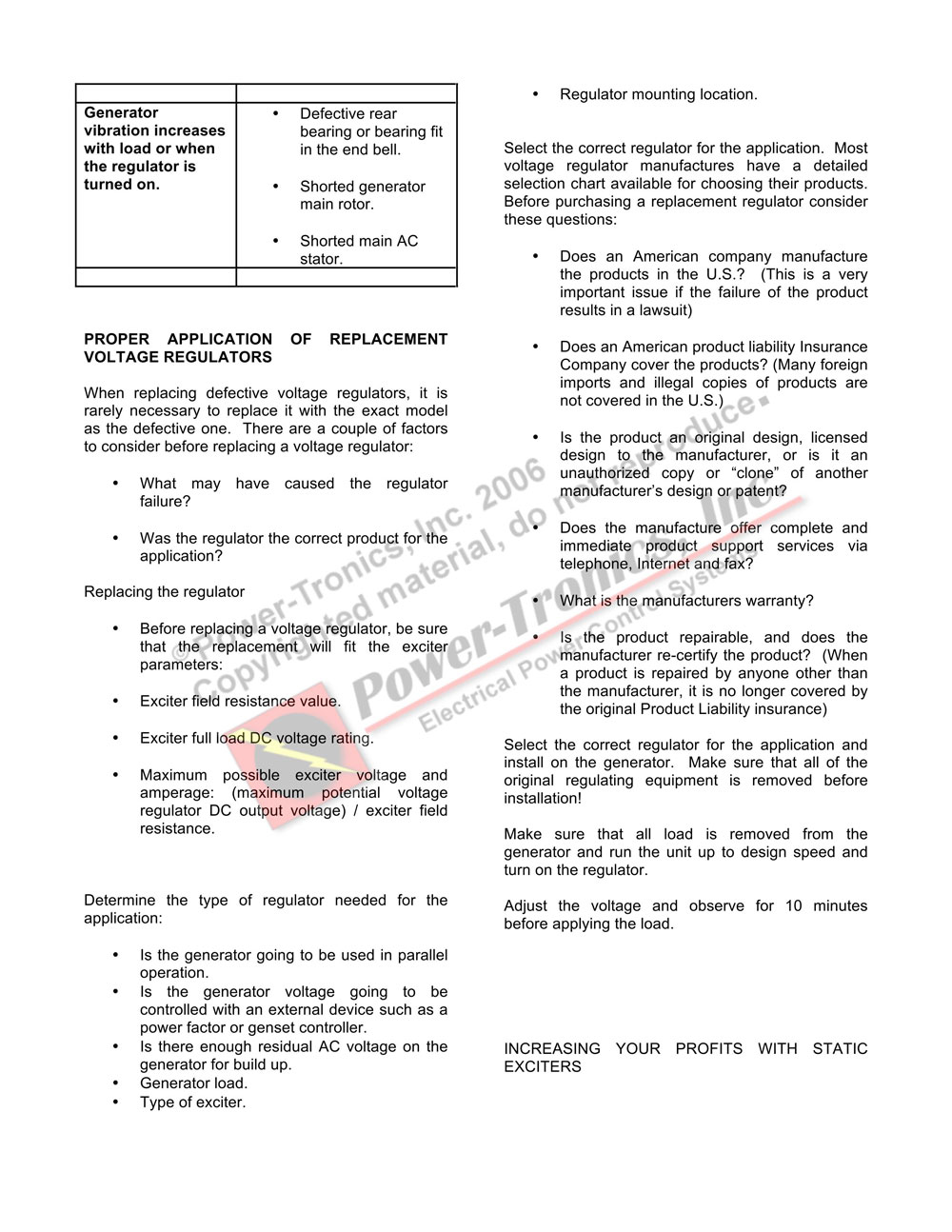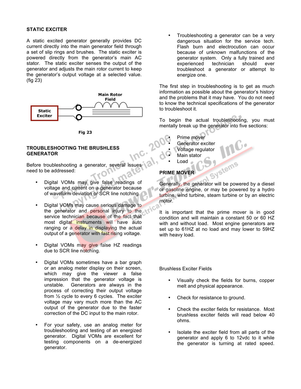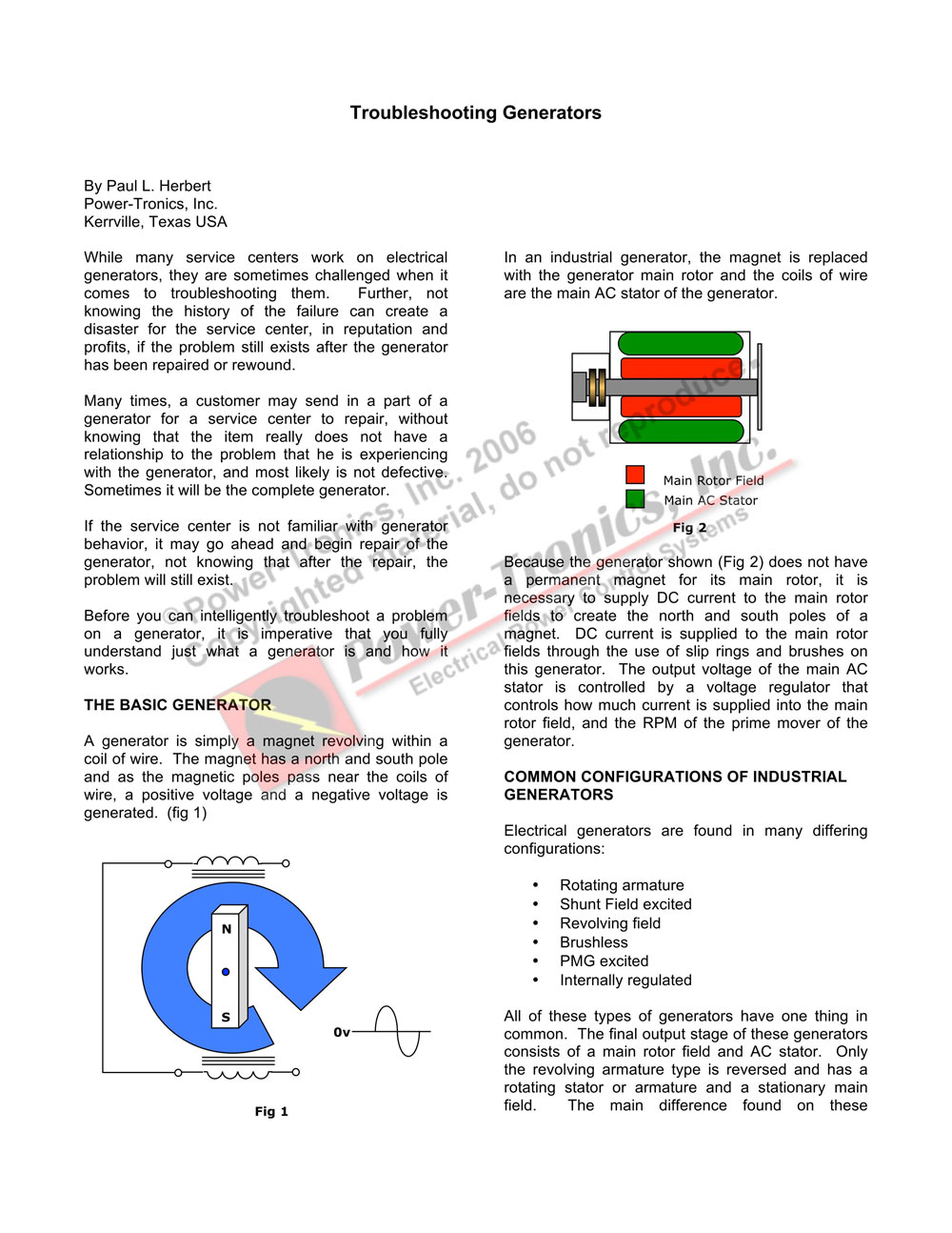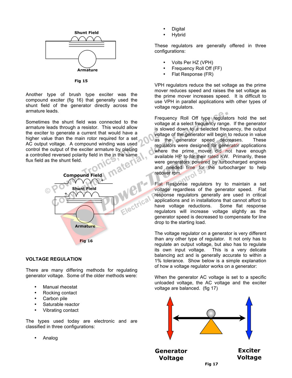 This is a copy of a program presented at the 2005 EASA International Convention in Nashville TN. It is being shared with you in the hope that more people learn the basics of electrical generators and how the voltage regulating systems integrate with them. This is copyrighted material and should be treated as such.