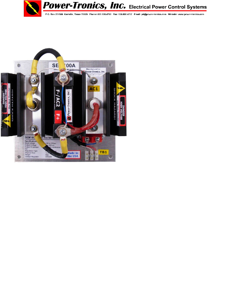 The SEM100A Static Exciter is